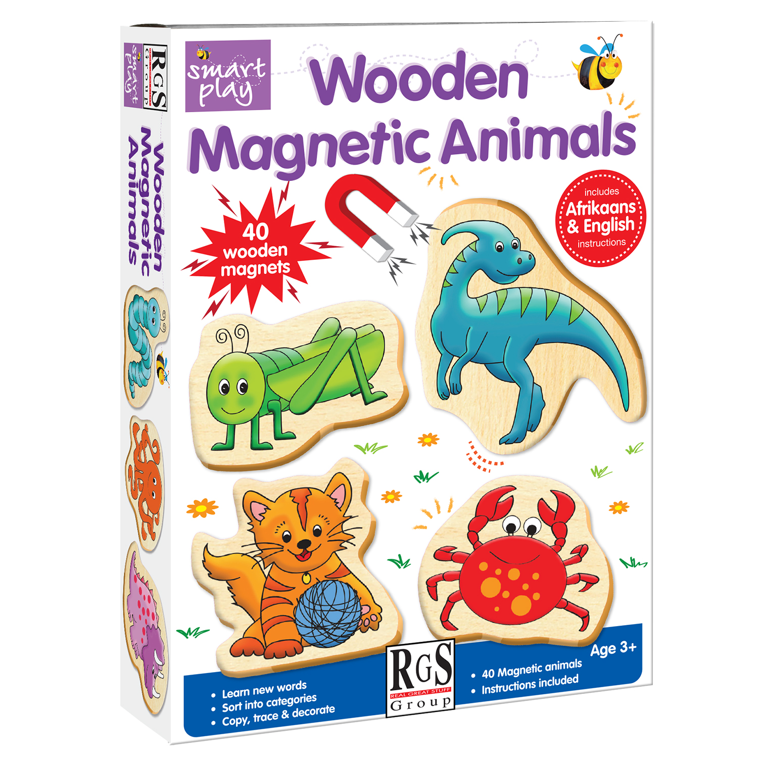 A box filled with 40 colourful, wooden magnetic animals to stimulate your child’s imagination and encourage him/her to learn new words.