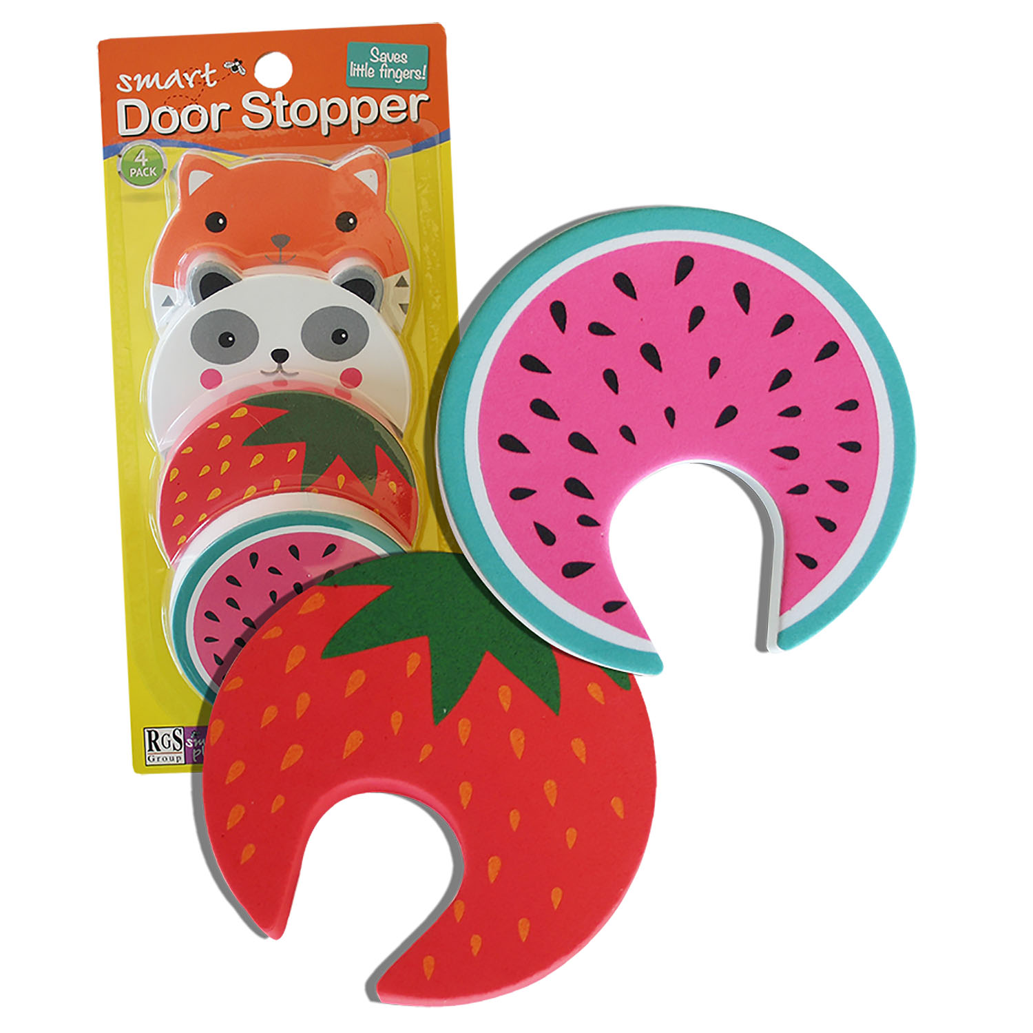 • Set of 4 foam door stoppers with fun designs